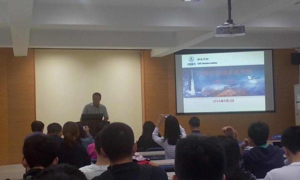 会议开始,佘老师首先代表学院向各位来宾表示了欢迎并简要介绍了参会学生情况。随后,航天五院研究生院的韩老师通过视频短片、ppt展示等方式,从研究院历史概况、基本情况、学科介绍、招生政策等六个方面向同学们做出了精彩且详细的讲解,赢得了在座同学的阵阵掌声。